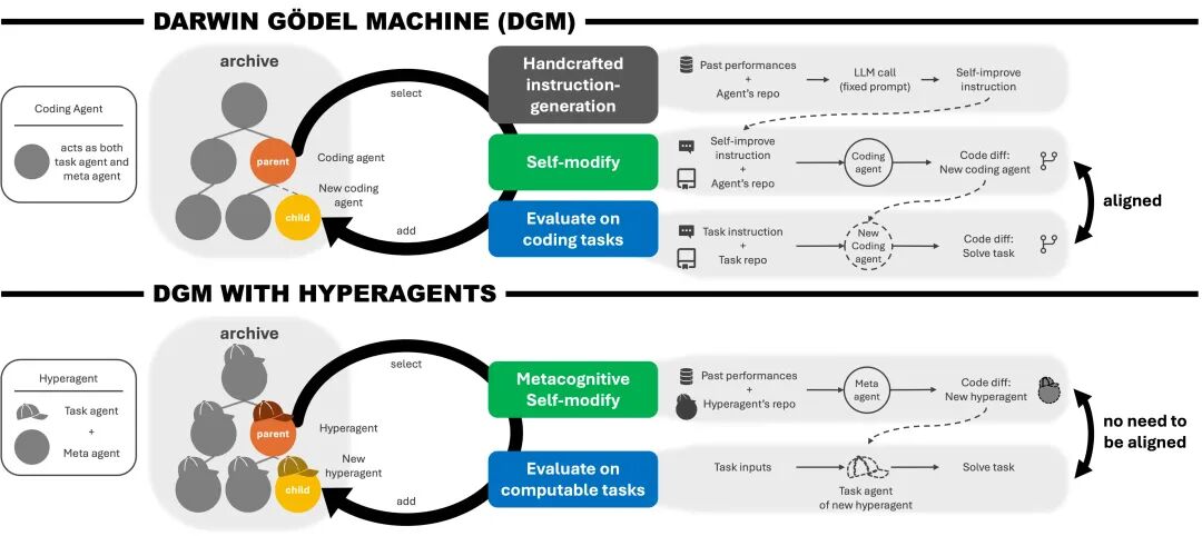 它们既能修改自己的任务执行行为,也能修改生成未来改进建议的过程。