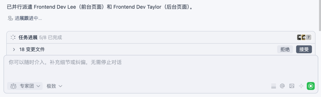 此外,实测时我还多次发现,多名专家同时推进工作的场景,在这种情况下专家们分别写不同页面,或者分别开发前端和后端,这无疑加快了项目推进速度。