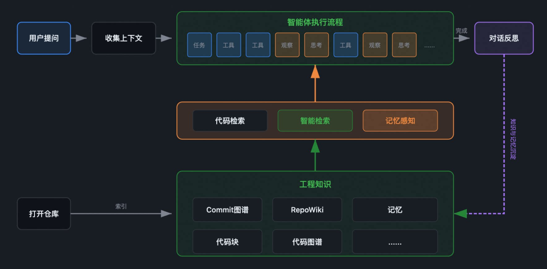 针对上下文问题,Qoder还特意打造了工程知识引擎,这是一套可以使用多维数据源的代码认知系统,它能整合你的代码文件、提交历史、RepoWiki、记忆,优化专家们深度理解上下文的能力。