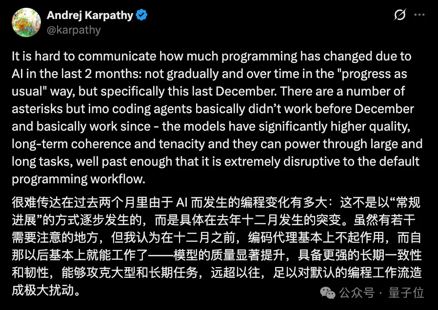 “从去年12月开始,AI Coding已质变”,大神卡帕西的这段发言,最近引起了行业热议。