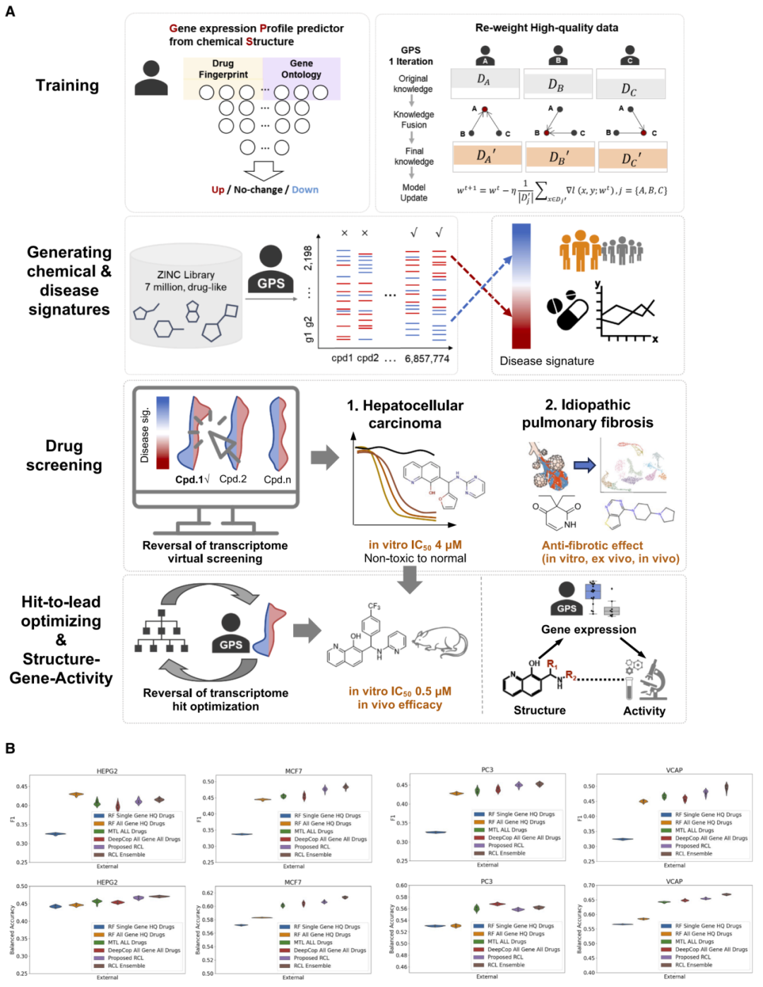 研究人员构建了一个深度学习平台,用于预测化合物诱导的基因表达变化,并评估其是否能够逆转疾病相关的转录特征。