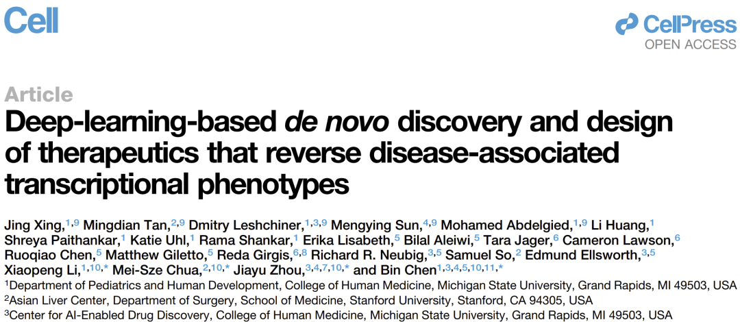 密歇根州立大学陈斌教授团等联合开发了一种基于深度学习的药物发现框架,该方法能够预测化合物引起的基因表达变化,并将这些变化与疾病相关的转录特征进行比较,从而识别具有潜在治疗作用的分子。在此基础上,该框架还可以结合生成模型,从头设计新的化合物,并通过预测模型筛选出能够有效逆转疾病转录特征的候选药物。研究结果表明,该方法不仅能够在已有化合物库中筛选出有效分子,还可以通过分子设计进一步提高活性,并在细胞和动物实验中验证其治疗效果。