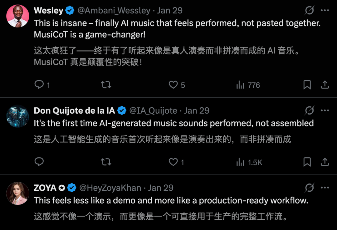 结果惊人惊喜,模型不再「拼接声音」,而是以更接近人类音乐家的创作逻辑来完成旋律发展、情绪铺陈与结构收束。