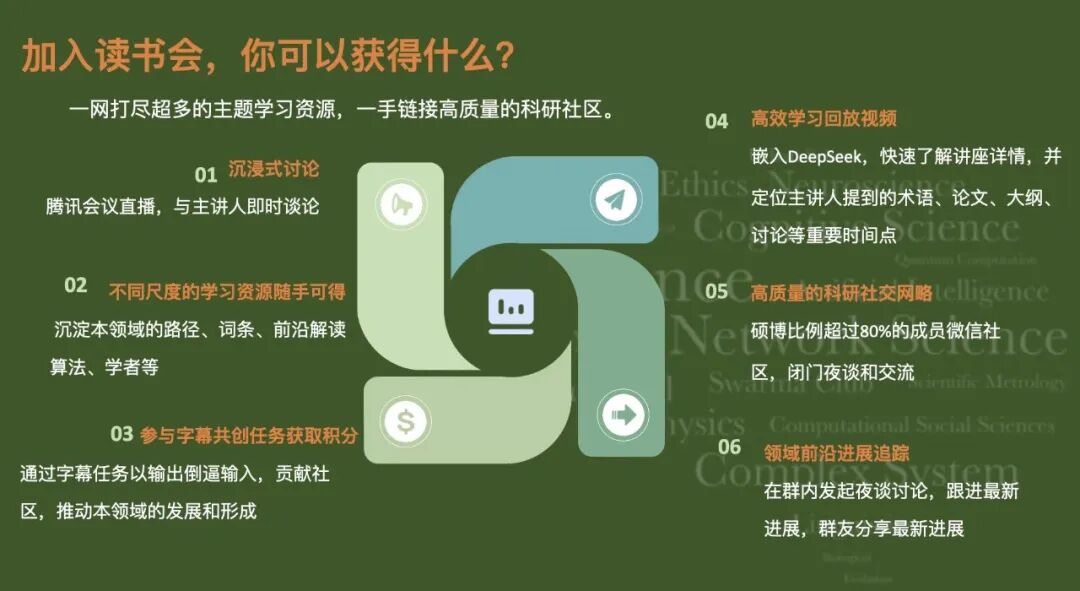 PS:为确保专业性和讨论的聚焦,本读书会谢绝脱离读书会主题和群体智能相关问题的空泛的哲学和思辨式讨论;如果出现讨论内容不符合要求、经提醒无效者,会被移除群聊并对未参与部分退费。