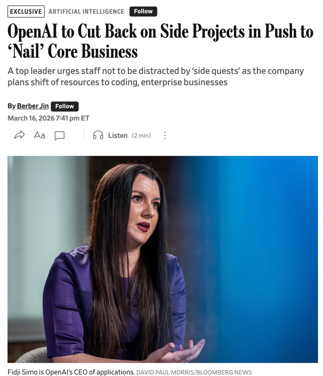 WSJ独家称,OpenAI目前处于战略转型期,正转移计算资源和顶尖人才,全力押注办公生产力和编程工具。