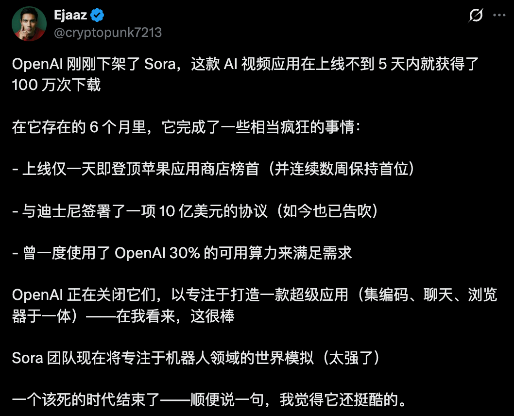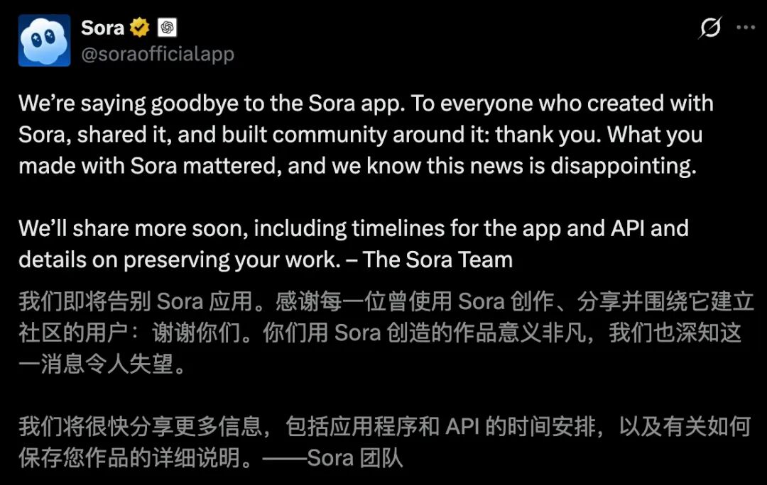 刚刚,OpenAI正式关停Sora,这一轰动全球的AI视频APP,说没就没了!