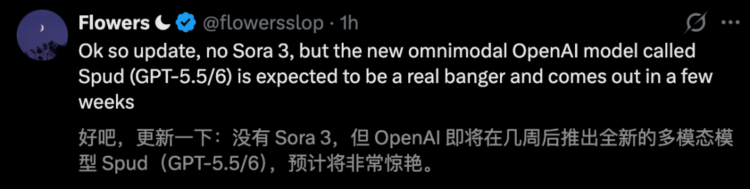 为此,OpenAI才做出了这一极其冷酷且果断的决定:斩杀Sora,为Spud备上充足的算力。