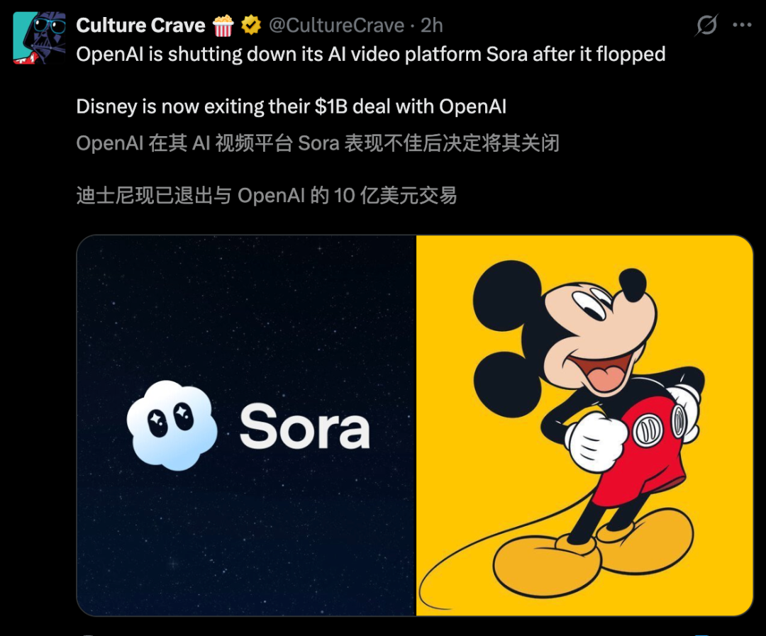 就连OpenAI与迪士尼买卖,如今也一并告吹了。