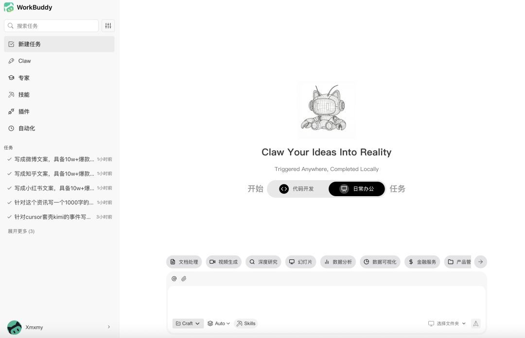 而这整套内容创作流程的幕后操盘手,正是腾讯推出的全场景职场AI智能体桌面工作台——WorkBuddy。