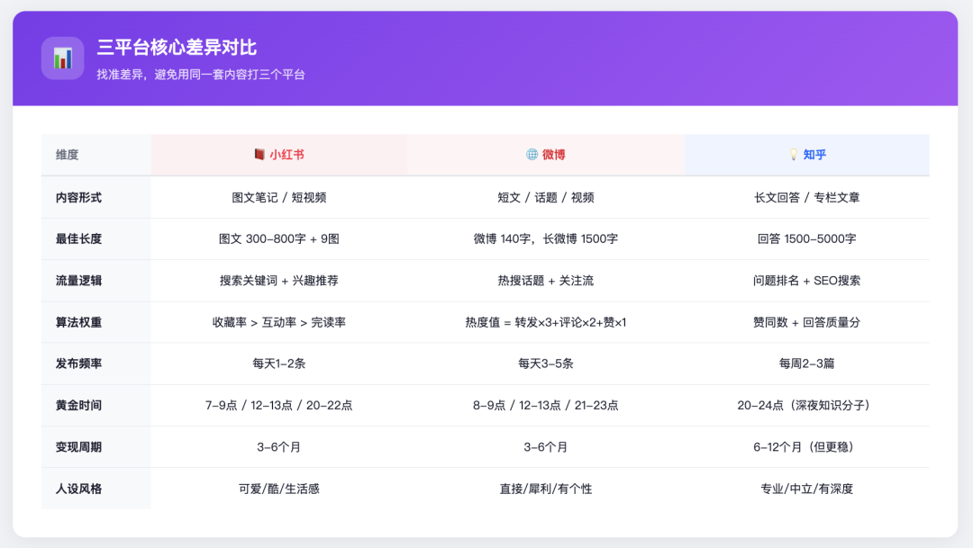 我的需求不是「写一篇」,而是需要把同一个选题,拆成适配微博、知乎、小红书的不同风格自媒体内容。