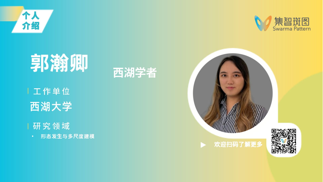 主讲人:郭瀚卿,2017年获四川大学和University of Minnesota – Twin Cities学士学位。2017-2022年博士就读于Dartmouth College,利用生物物理学、显微成像、光遗传学等手段研究胚胎发育过程中的形态发生过程,并获Hannah T. Croasdale Scholar Award、Gilman Fellow等荣誉。后继续于Dartmouth College开展博士后研究工作。2023年作为Westlake Fellow加入西湖大学。