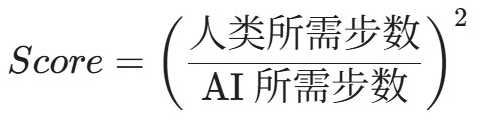 假设人类解决这个游戏需要10步,而AI用了100步,那AI的得分是多少?