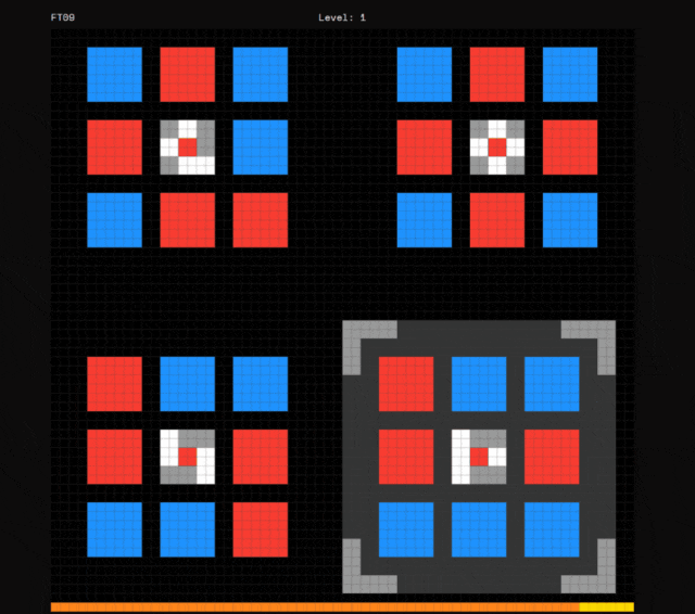 而到了ARC-AGI-3,难度直接换了个维度:从「静态题」变成了「互动游戏」。