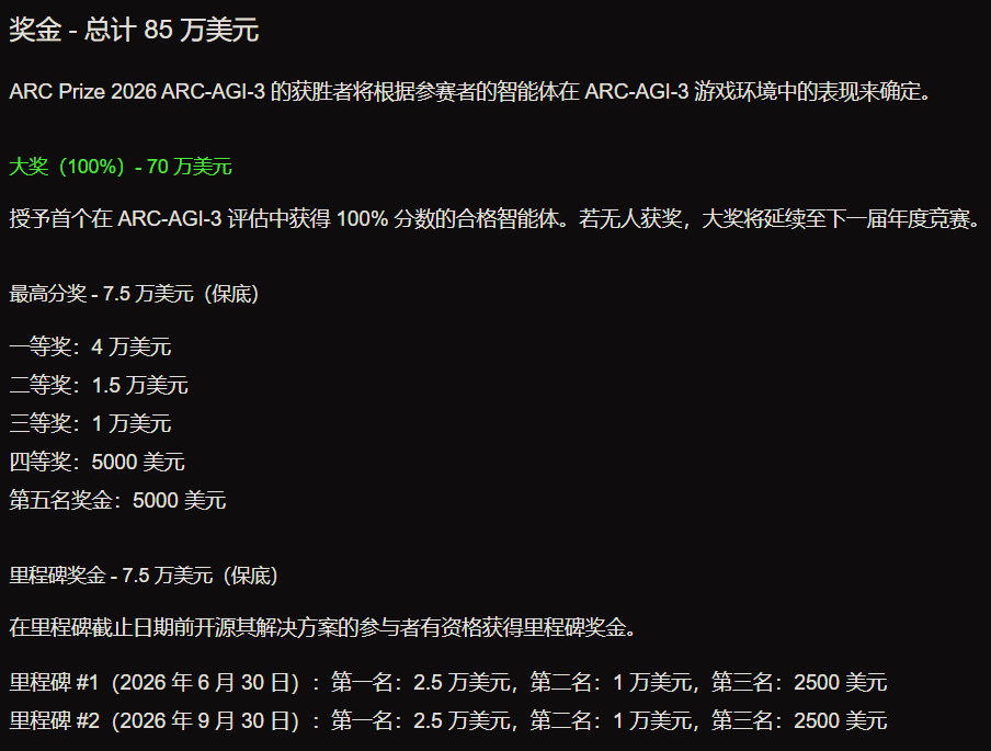 目前,这场挑战赛的奖金池高达85万美元,其中70万美元是给「满分通关者」的终极大奖。