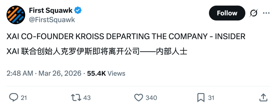 凄凄惨惨戚戚,xAI联创,现在只剩一个了。