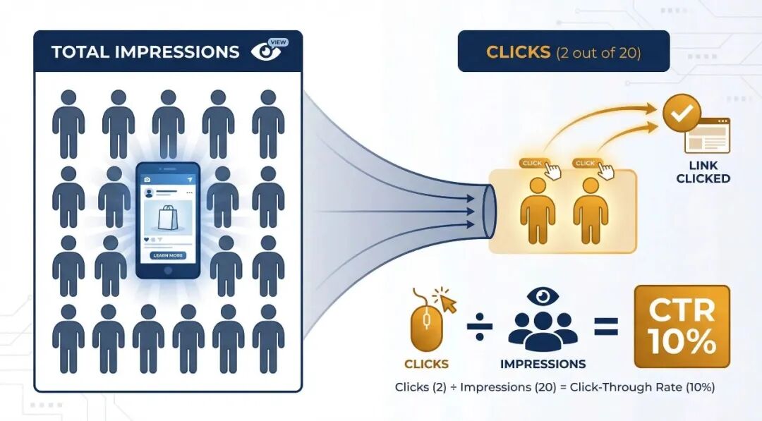 关于转化率的具体衡量指标——CPM、CPC、CTR 等核心数据怎么看、怎么判断好坏,我们在后面的章节会有更详细的拆解和参考区间。