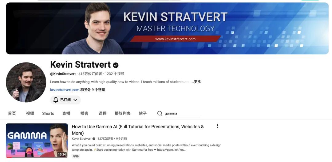 比如科技教程博主 Kevin Stratvert(415 万粉丝)为 Gamma 做的这条视频,就是一个很好的例子——他没有列参数,而是直接录屏演示从大纲到成品 PPT 的全过程,十几分钟让观众完整理解了产品能做什么。这条视频获得了 32 万次的观看。