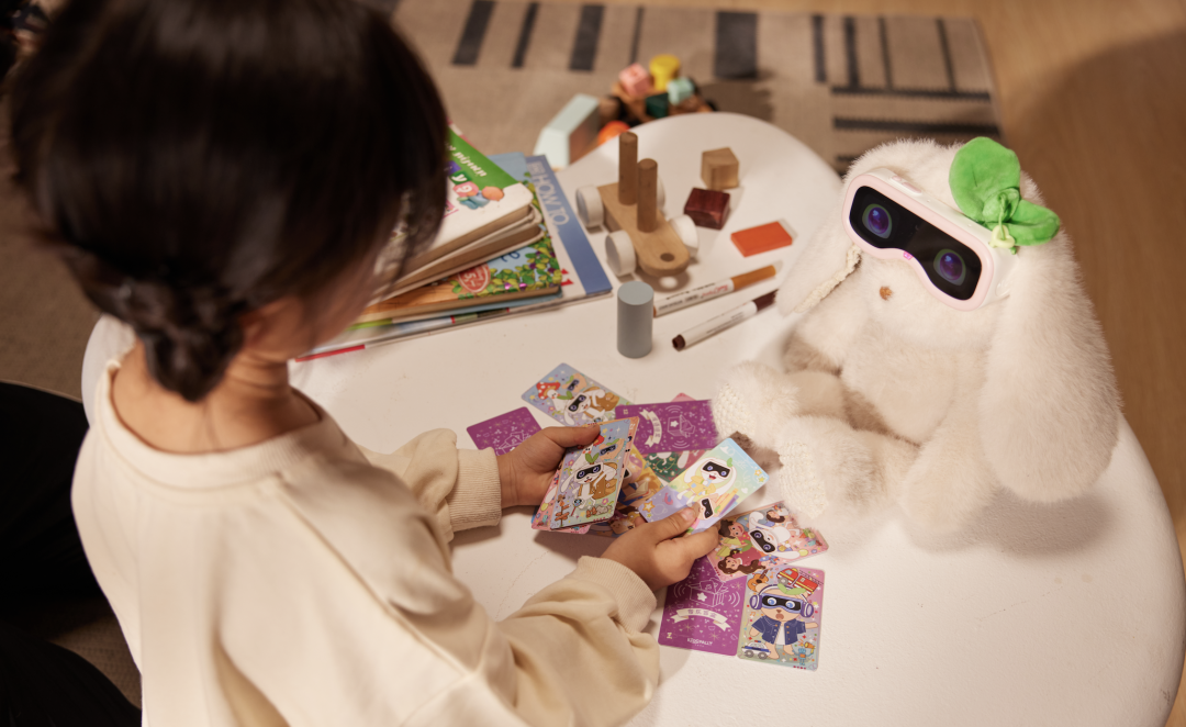 毛绒娃娃没有 AI 能力,智能交互都在娃娃的智能眼镜上;押注纯语音,而是做了大量 NFC 卡牌,涵盖故事播放、探案游戏等等,并将 NFC 卡牌视作孩子的 AI 入口。