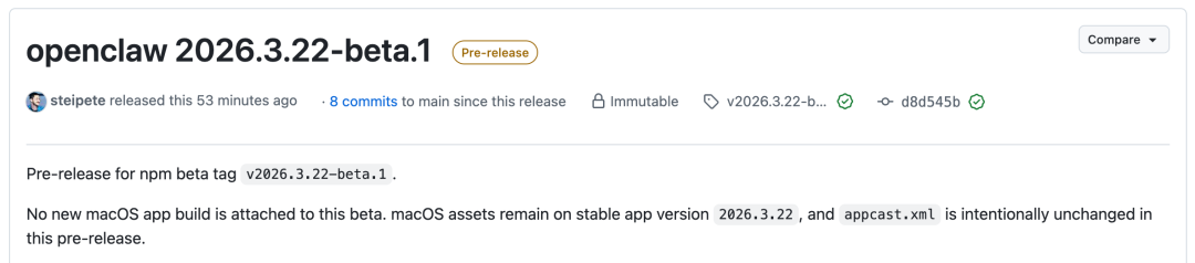 GitHub地址:https://github.com/openclaw/openclaw/releases/tag/v2026.3.22-beta.1