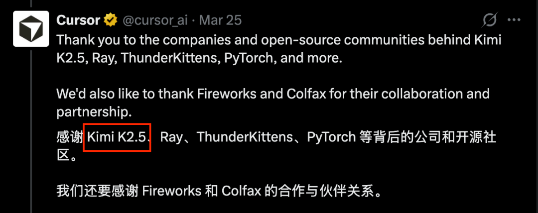 就在Cursor发报告为自己找补的同时,另一边Kimi早已“朝前看”——