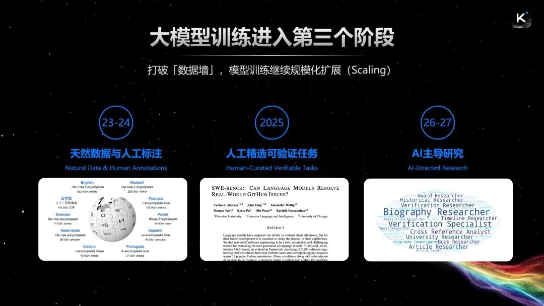 如果说2023和2024年,大模型训练还是以天然数据为主,少量人工标注为辅。那么到了2025年,业内则更加重视人工筛选高质量任务,以及搭建大规模的强化学习系统。