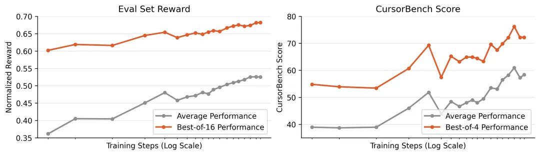除此之外,Composer 2还添加了一系列辅助奖励机制,包括针对代码风格、交互表达的正向奖励,以及针对不当工具调用的产品级惩罚,并根据训练中涌现的行为动态调整奖励规则。