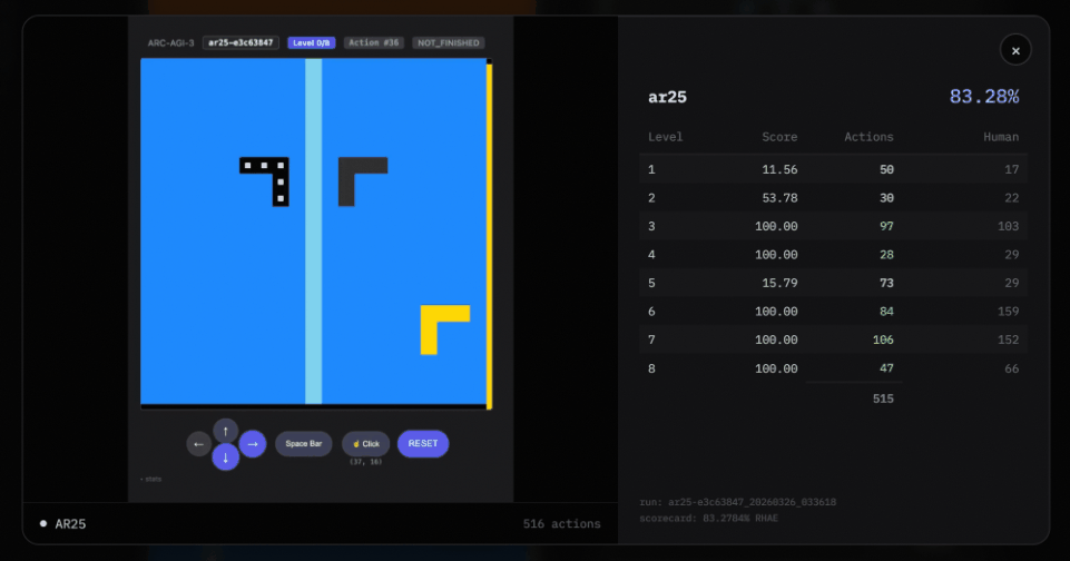 出人意料的是,短短一天内,ARC-AGI-3就被破解了!
