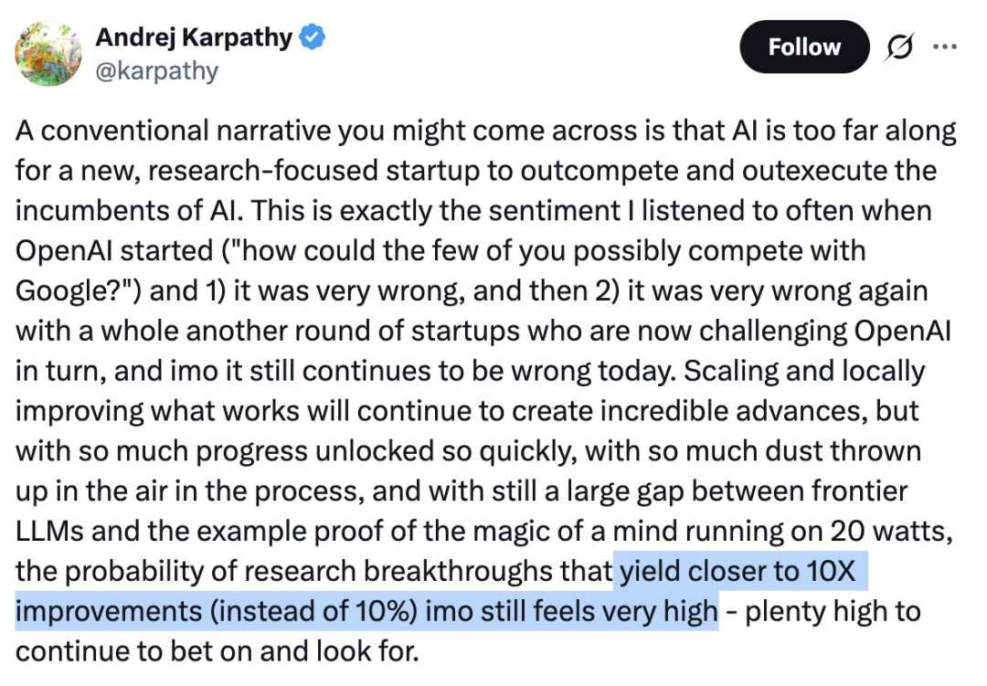 这种10倍速革命,才是Karpathy眼中通往AGI的唯一快车道。