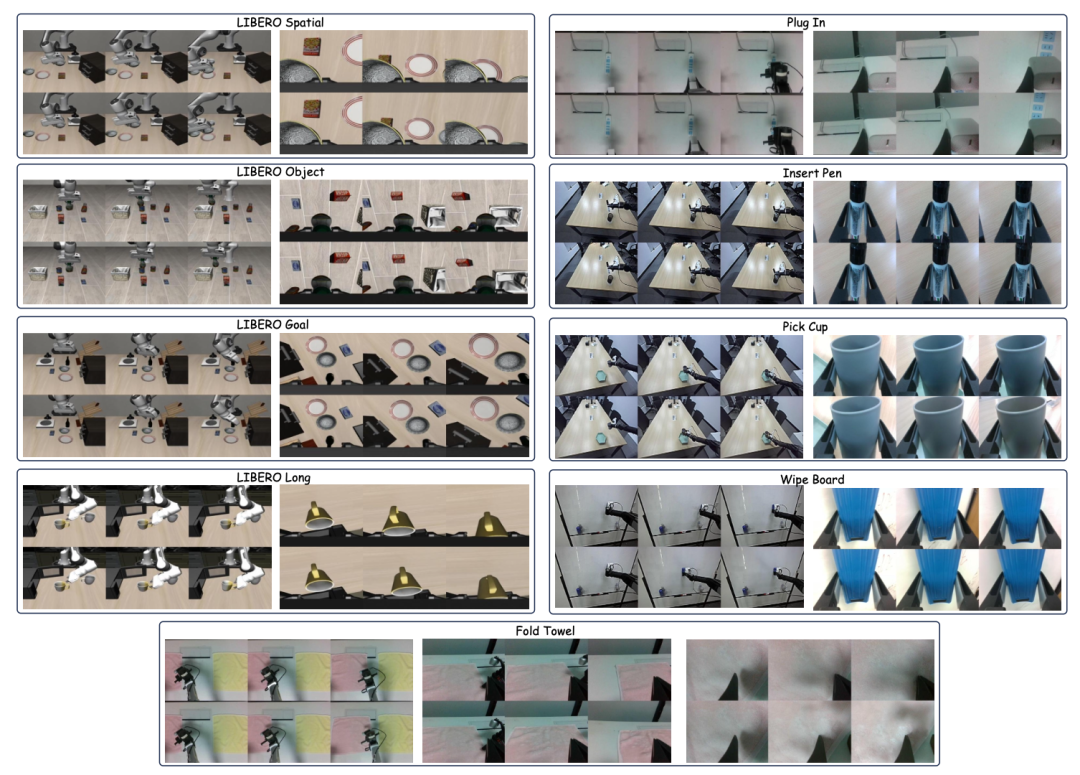插头有没有对准插孔,机械臂末端偏了几毫米,毛巾是不是被正确翻折,腕部相机里看到的接触状态是不是和头部相机一致,这些都不是「画得像」就能过关的事。