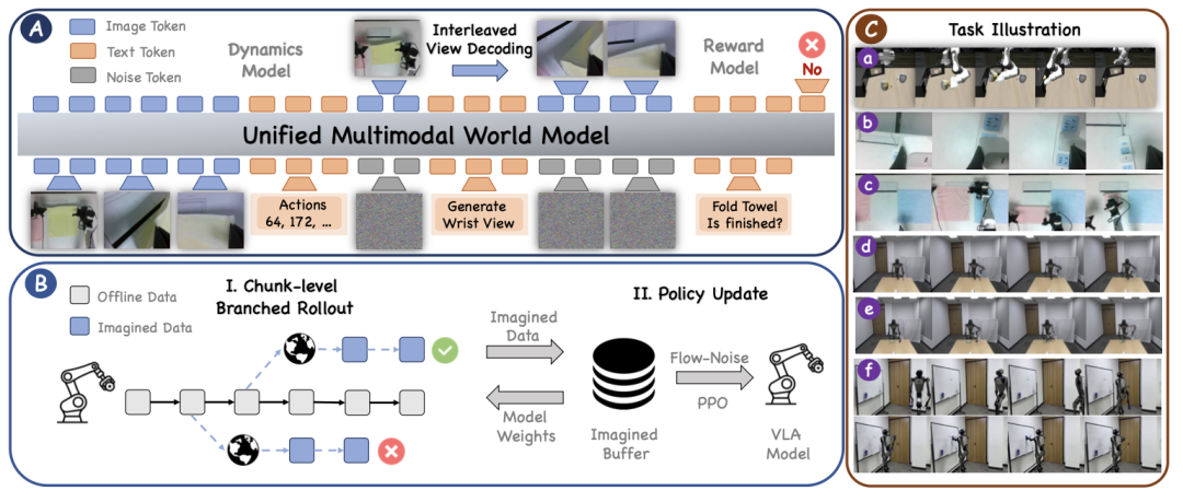 作者做的是另一件更务实的事:把世界模型真正嵌进VLA的后训练流程里,并把最容易失控的几个环节逐个处理掉。