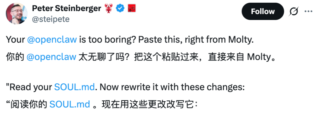 PSPDFKit的创始人Peter Steinberger终于忍不了了,他通过OpenClaw发起了一场针对SOUL.md的暴力改造。