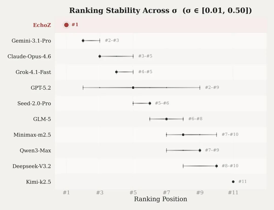 EchoZ在排名鲁棒性测试中稳定第一