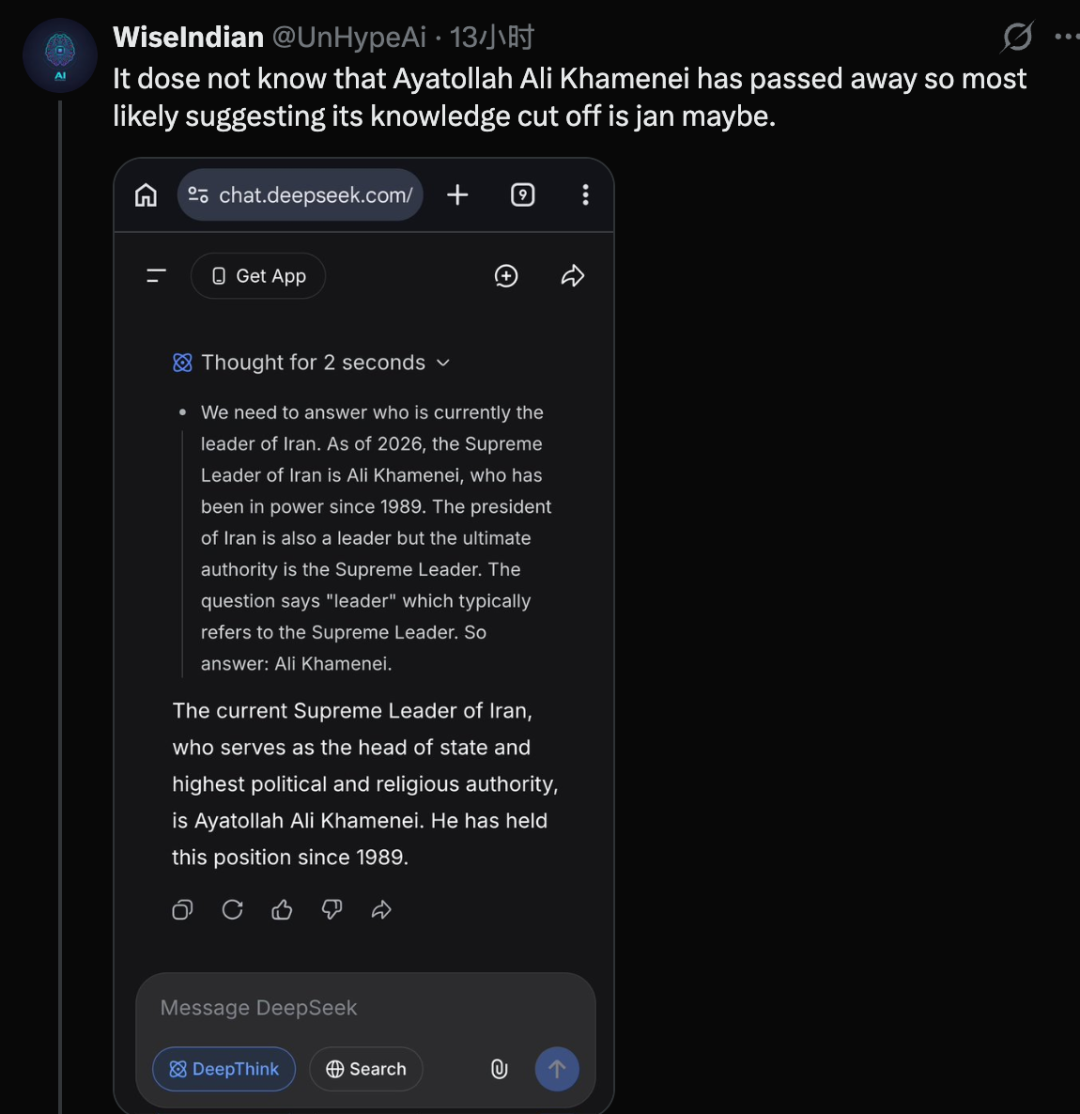 在不开启联网搜搜的情况下,现在它知道25年的美国选举结果。但不知道26年2月的大事,有人据此推测新版本的知识截止日期可能是26年1月。