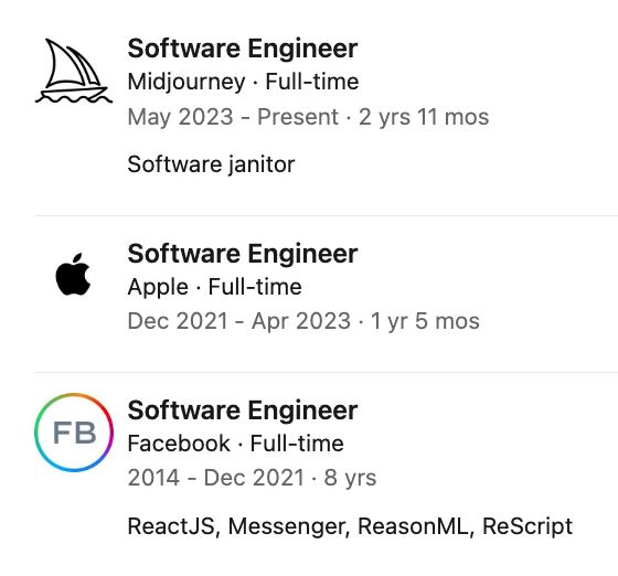 作为React Motion的创造者,ReasonML/ReScript语言的缔造者,Facebook Messenger前端的核心架构师,他如今正在Midjourney用Bun撑起了整个UI体系。