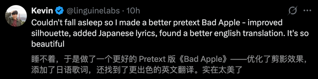 网友太过沉迷,熬夜爆肝了一个Pretext版的「Bad Apple」。