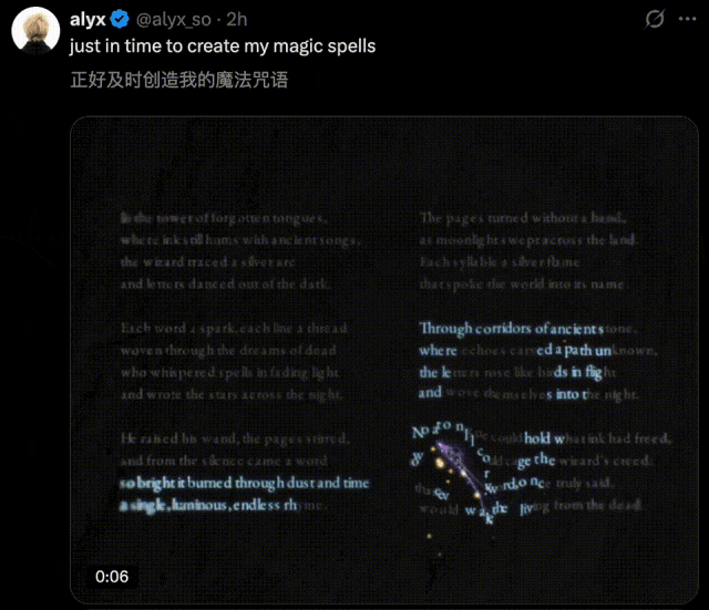 「辉夜姬」里的藤原千花跳进了文字里,标志性的舞步配上实时流动的排版,堪称是二次元照进了现实。