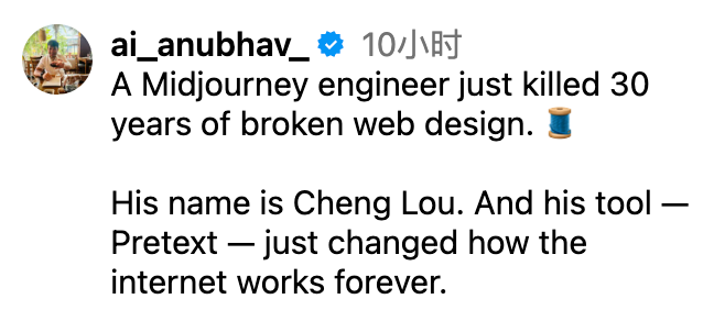 【新智元导读】前端圈变天了!Midjourney大神出手,开源Pretext一夜爆红,成网页排版救星,彻底终结UI三十年难题。如今,全网1600万人围观,彻底玩疯。