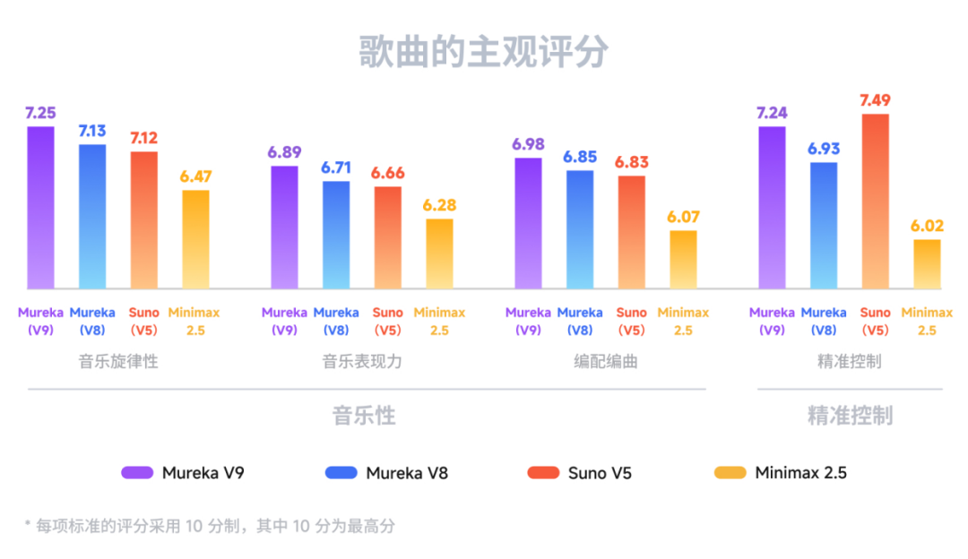 此外,一些不必要的人声哼唱、模糊唱词等干扰也在此版本中大幅减少;而在表达多样性上,V9 也大幅减少了旋律、编排与听感上的重复问题,让相同主题的创作,可以借助 AI 得到不同版本的试错与可能。
