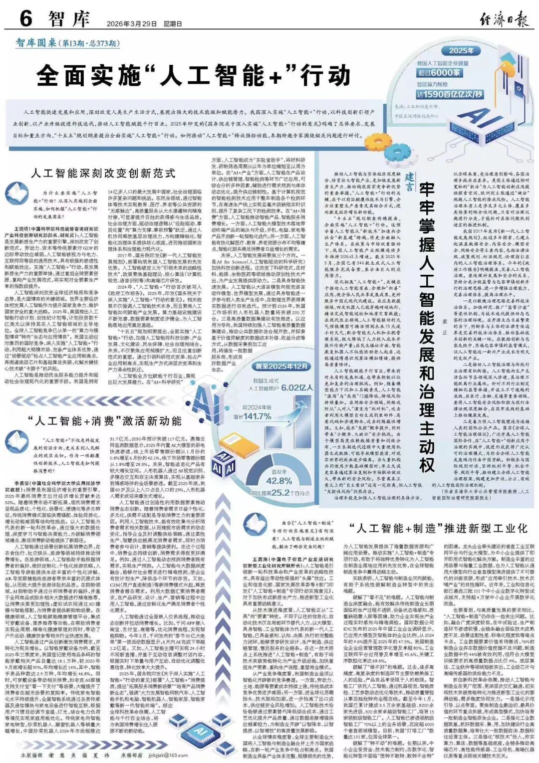 推动人工智能与实体经济深度融合、培育壮大智能产业,是加快发展新质生产力、推动构筑国家竞争新优势的重要举措。“人工智能+”行动的关键,在于以前沿颠覆性技术为引擎,全方位重塑生产要素及其组合方式,进而激发经济增长新动能。