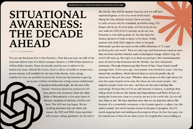 当然了,还有炫技的文字、插画混排,哪怕人物在画面中动态移动,文本也会毫秒级自动避让、实时重排。