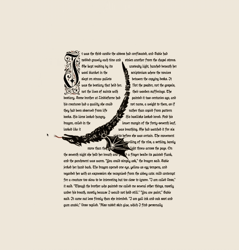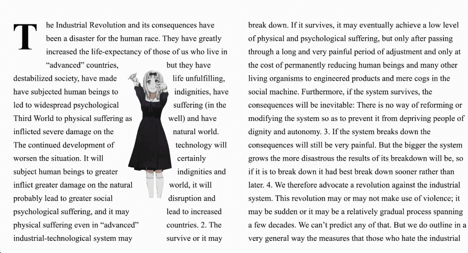 这个大段文本和喷火龙插画的实时动态环绕混排,效果直接给到一个夯