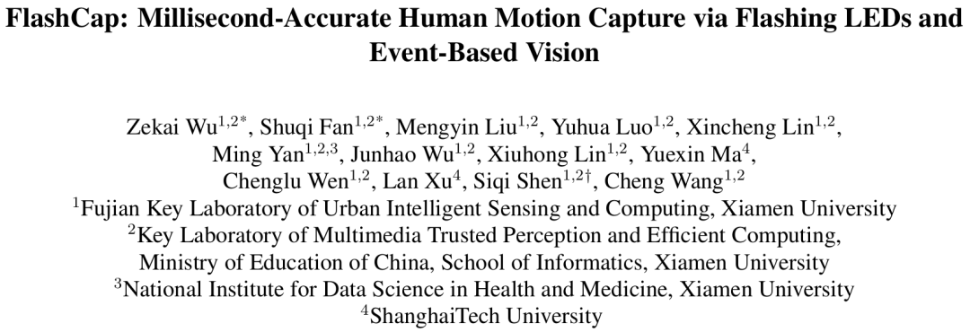 现有人体动作捕捉服达不到1000Hz毫秒级动捕,为了打破这个帧率天花板,厦门大学ASC实验室与上海科技大学另辟蹊径,联合提出了业界首个基于闪烁LED灯与事件相机的毫秒级动捕系统FlashCap。