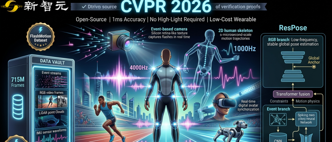 【新智元导读】全球首个1毫秒级人体动作捕捉系统FlashCap,通过闪烁LED与事件相机结合,实现1000Hz超高帧率捕捉。无需昂贵设备或强光环境,低成本穿戴服即可精准捕捉极速动作。团队同步开源715万帧的FlashMotion数据集与多模态模型ResPose,显著提升运动分析精度,推动体育、VR与机器人领域迈向高动态智能新阶段。