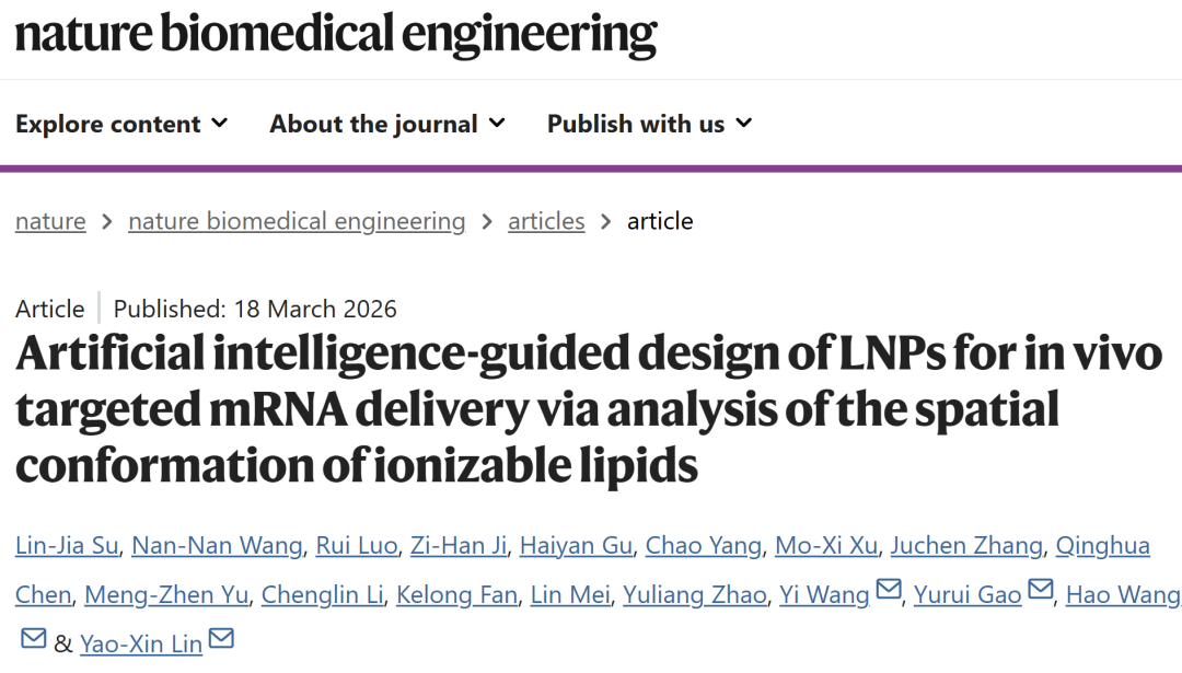 Su, LJ., Wang, NN., Luo, R. et al. Artificial intelligence-guided design of LNPs for in vivo targeted mRNA delivery via analysis of the spatial conformation of ionizable lipids. Nat. Biomed. Eng (2026).