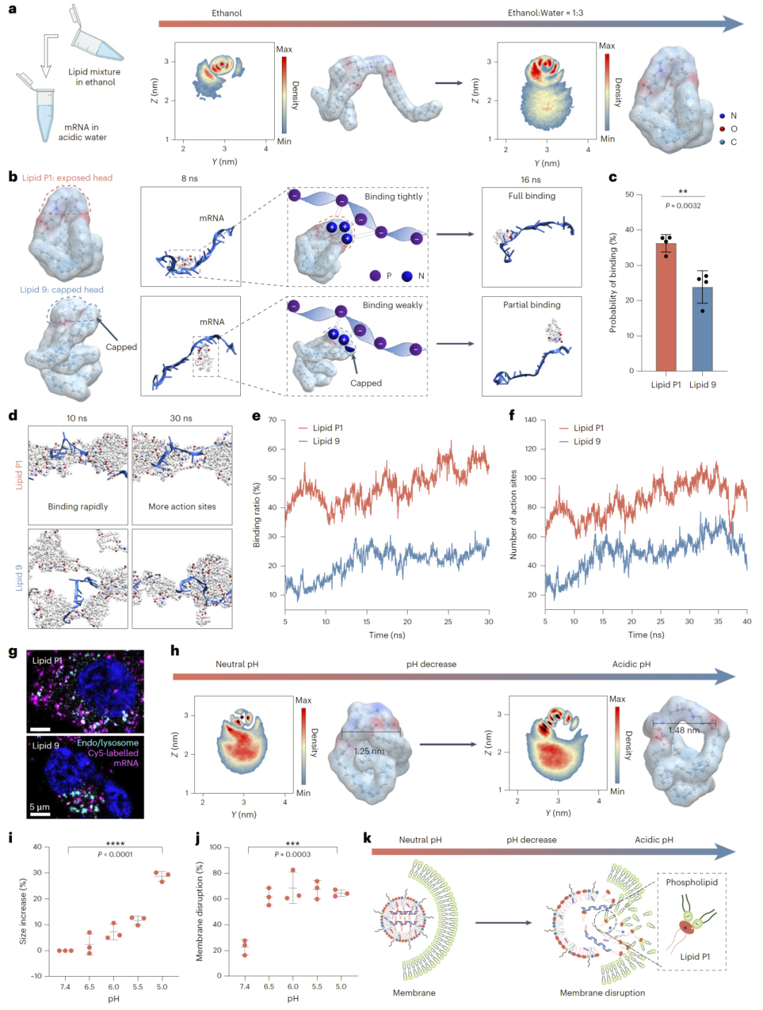 图5:离子化脂质的空间构象增强其与mRNA的组装及内体逃逸能力。