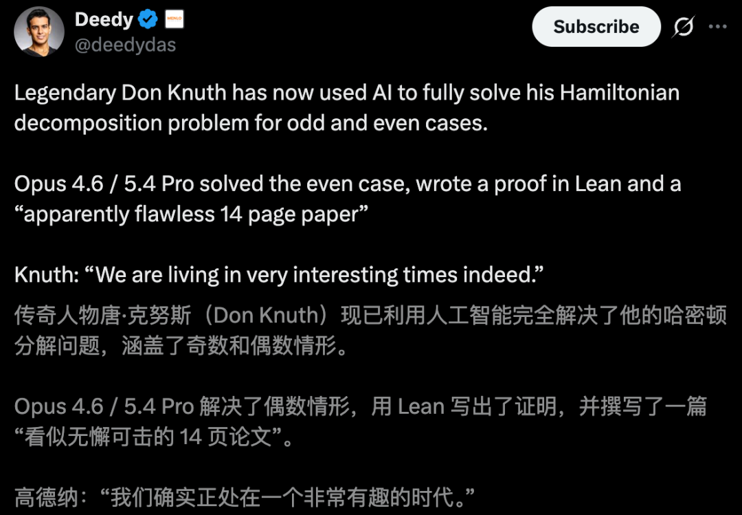 三周前,「算法祖师爷」、图灵奖最年轻的得主高德纳被Claude震惊:一个悬了多年的算法难题,竟被Claude Opus 4.6解决了。