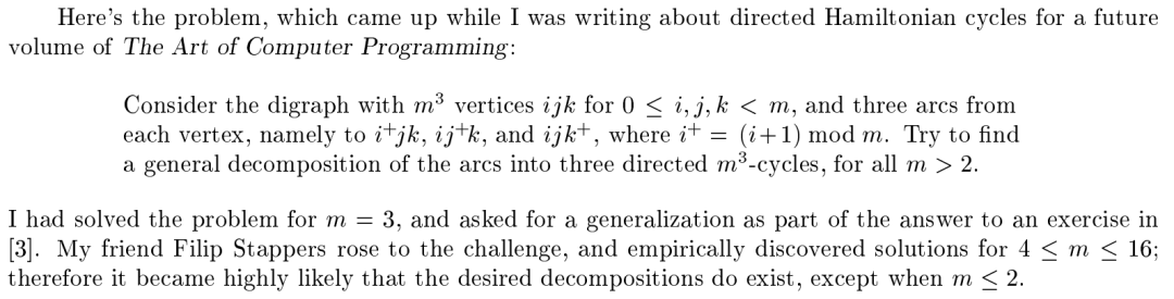论文地址:https://cs.stanford.edu/~knuth/papers/claude-cycles.pdf