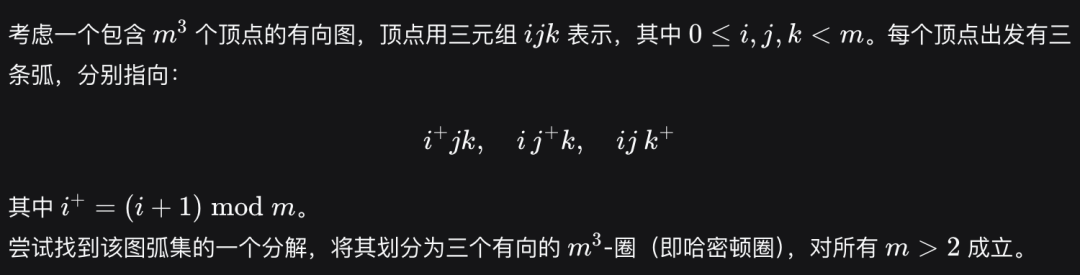 而「哈密顿分解问题」,则是要将一个图完美地拆解为多个这样的环路。这不仅是计算量的博弈,更是对数学构造能力的极限压榨。