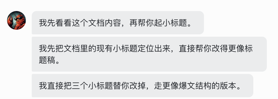 本意是丢给它一篇同事的在线文档,让它帮我想几个标题。