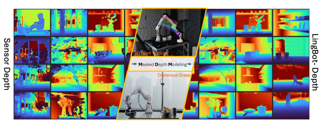 今年年初,蚂蚁灵波发布了LingBot-Depth模型,LingBot-Depth主要基于LingBot-Depth-Dataset数据集训练,在多项权威深度补全基准测试如iBims、NYUv2和DIODE上实现了SOTA。